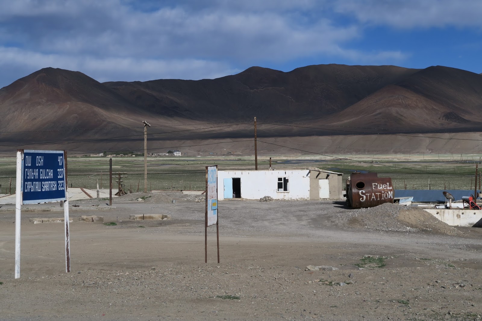 Say-Tash and our first real glimpse of the Pamirs ahead of us |